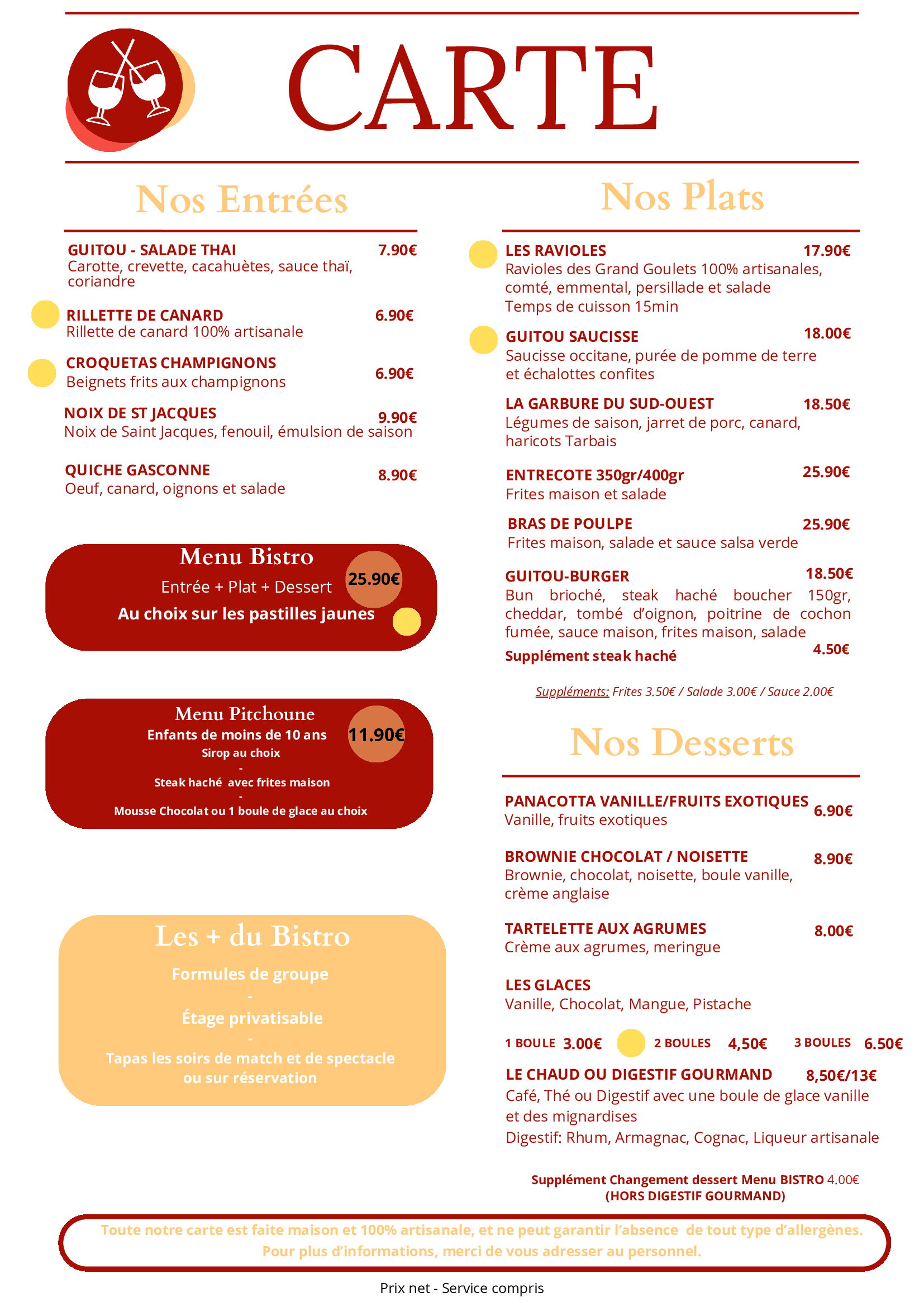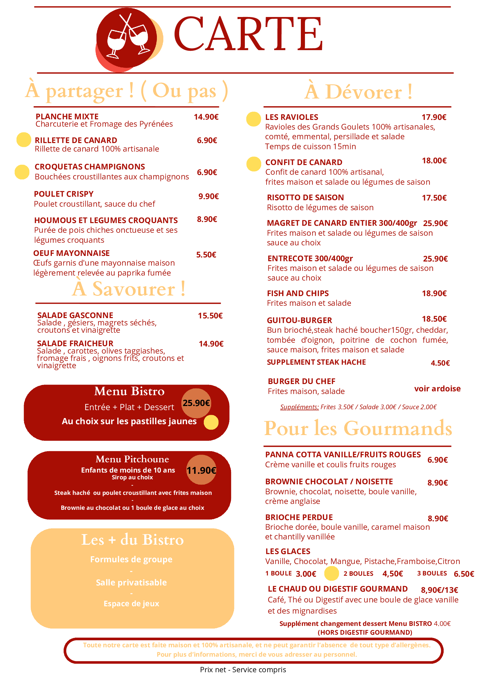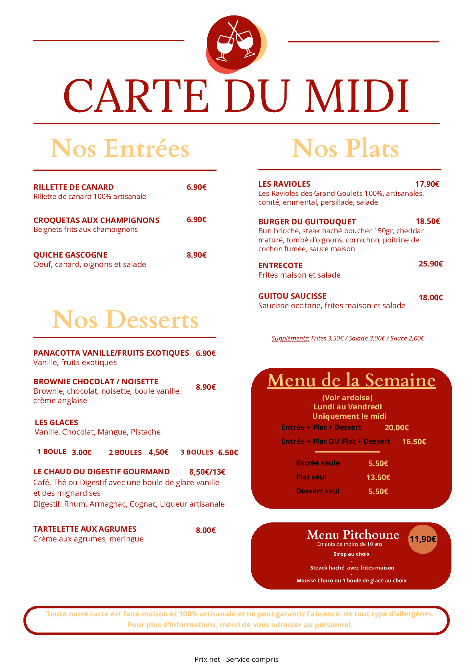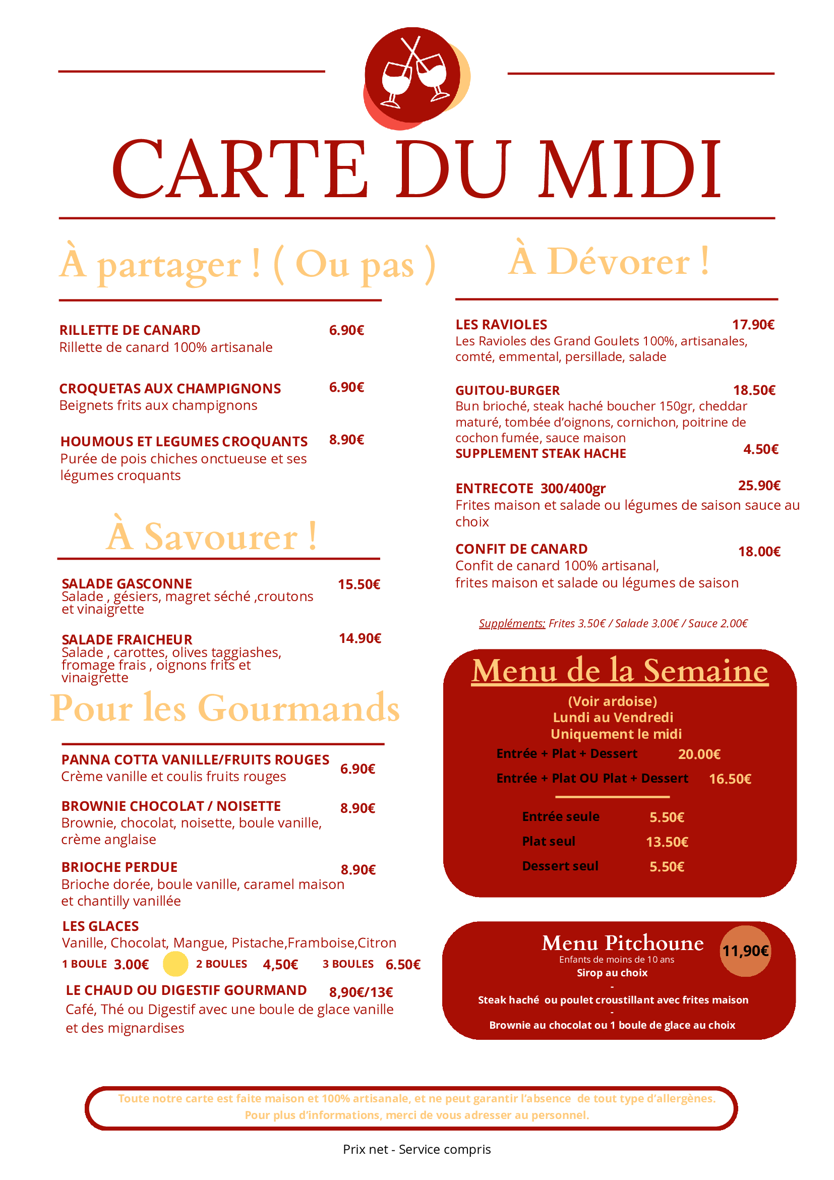 Le reste de la semaine nous vous proposons toute la carte.